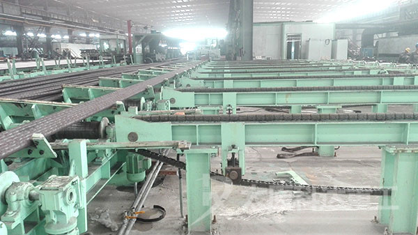 鋼管精整生產(chǎn)線包括從矯直工序開始到包裝入庫為止的矯直、吹灰、鋸切、探傷、人工檢驗(yàn)、噴標(biāo)、堆垛、打包整個(gè)工藝過程,是為了提高設(shè)備利用率降低設(shè)備投資,確保物流的暢通,減少生產(chǎn)過程中不必要的浪費(fèi)。將原先分片、分區(qū)的單線生產(chǎn)作業(yè)進(jìn)行連線布置,采用全自動(dòng)化控制。將不合格、缺陷產(chǎn)品自動(dòng)分選剔除單獨(dú)收集,各個(gè)單臺設(shè)備即可連線作業(yè)也可單獨(dú)作業(yè)。